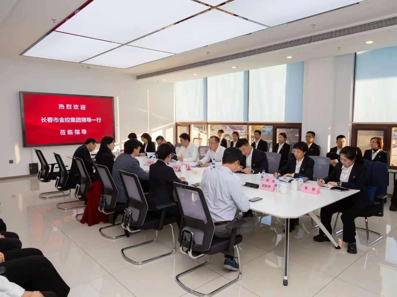 長春金控集團(tuán)總部黨支部全體黨員來到國家半導(dǎo)體激光技術(shù)創(chuàng)新領(lǐng)軍企業(yè)——吉光半導(dǎo)體科技有限公司,與吉光半導(dǎo)體公司黨支部聯(lián)合開展支部共建活動。金控集團(tuán)黨委書記、董事長高文濤和吉光半導(dǎo)體公司黨支部書記、總經(jīng)理佟存柱舉行座談。金控集團(tuán)領(lǐng)導(dǎo)苑吉林、南哲、趙斌、張馳,吉光半導(dǎo)體公司副總經(jīng)理朱建偉、彭航宇參加活動。